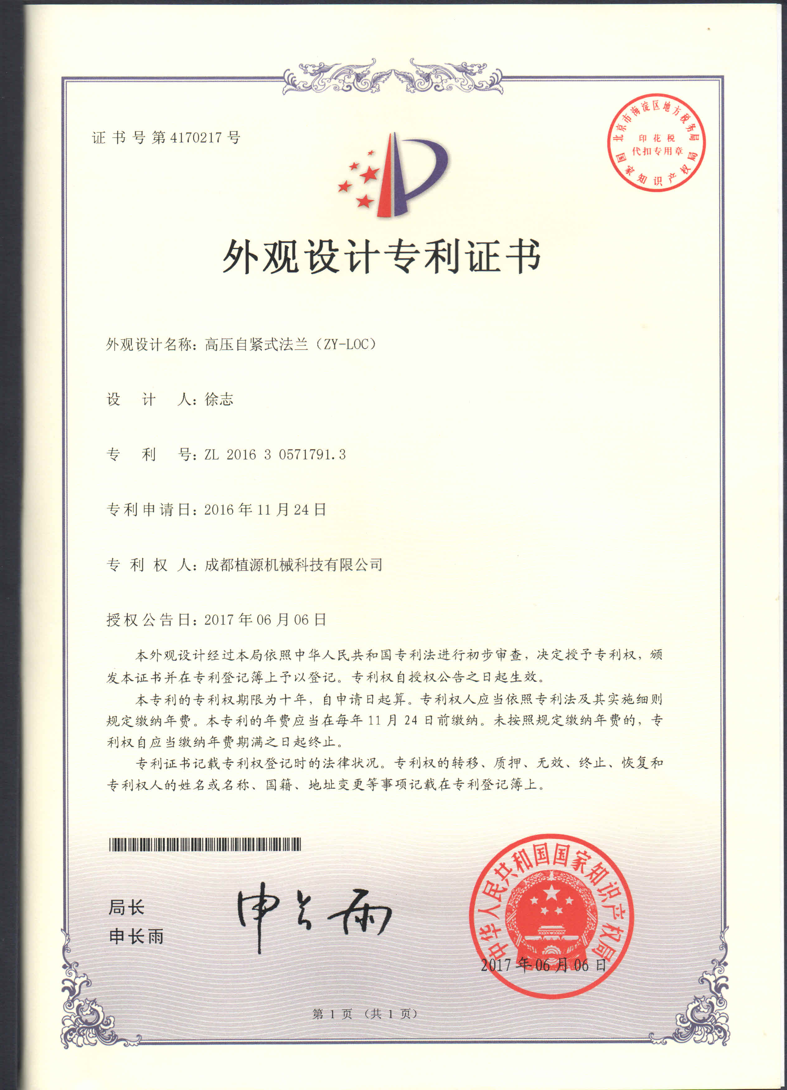 外觀設(shè)計(jì)專利證書:密封環(huán)(山字形)