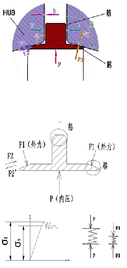 5、定性的講:筋、HUB、卡套、螺栓連成一個(gè)強(qiáng)有力的剛度、強(qiáng)度整體,保護(hù)著唇不受壓力P的波動和外界綜合附加載荷的影響,正常彈性密封。