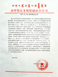 油煤新技術(shù)開發(fā)公司使用證明