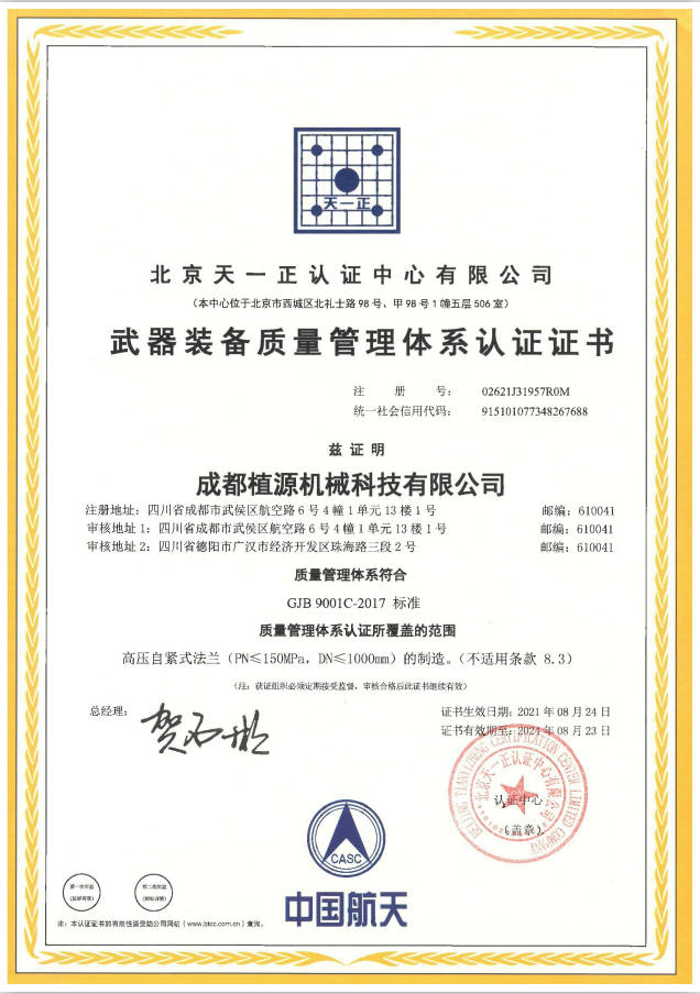 去年10月,成都植源機械科技有限公司(以下簡稱“成都植源”)積極響應四川省經(jīng)濟和信息化廳的組織號召,按照四川省軍民融合產(chǎn)業(yè)相關領域項目申報工作要求,提交了相關資料。 今年5月,成都植源成功通過“四川省軍民融合企業(yè)認定”。這是公司全體員工不懈努力的結果,是公司強勁實力、卓越品質(zhì)、軍民